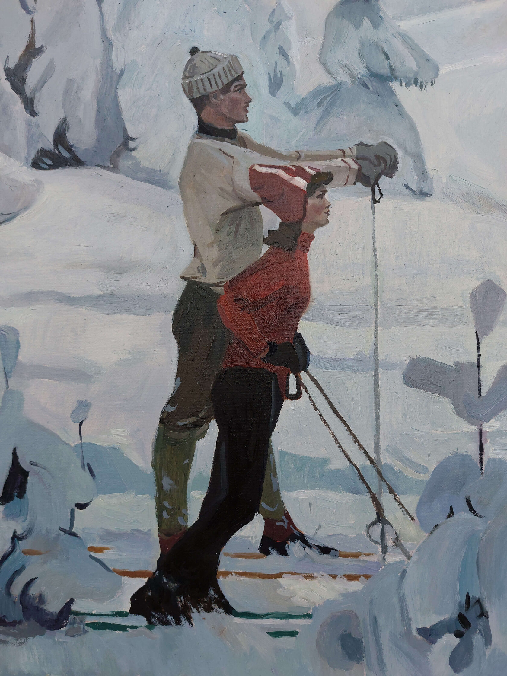 Орловский Андрей Львович «Молодость Москвы» КОПИЯ 2023 Холст, масло. 82*42 см. Картина Орловского А.Л. 1970 г. «Молодость Москвы» была создана к III Всесоюзной художественной выставке «Физкультура и спорт», состоявшейся в Москве в 1971 г. Оригинал размером 190*100 см находится в частной коллекции.
